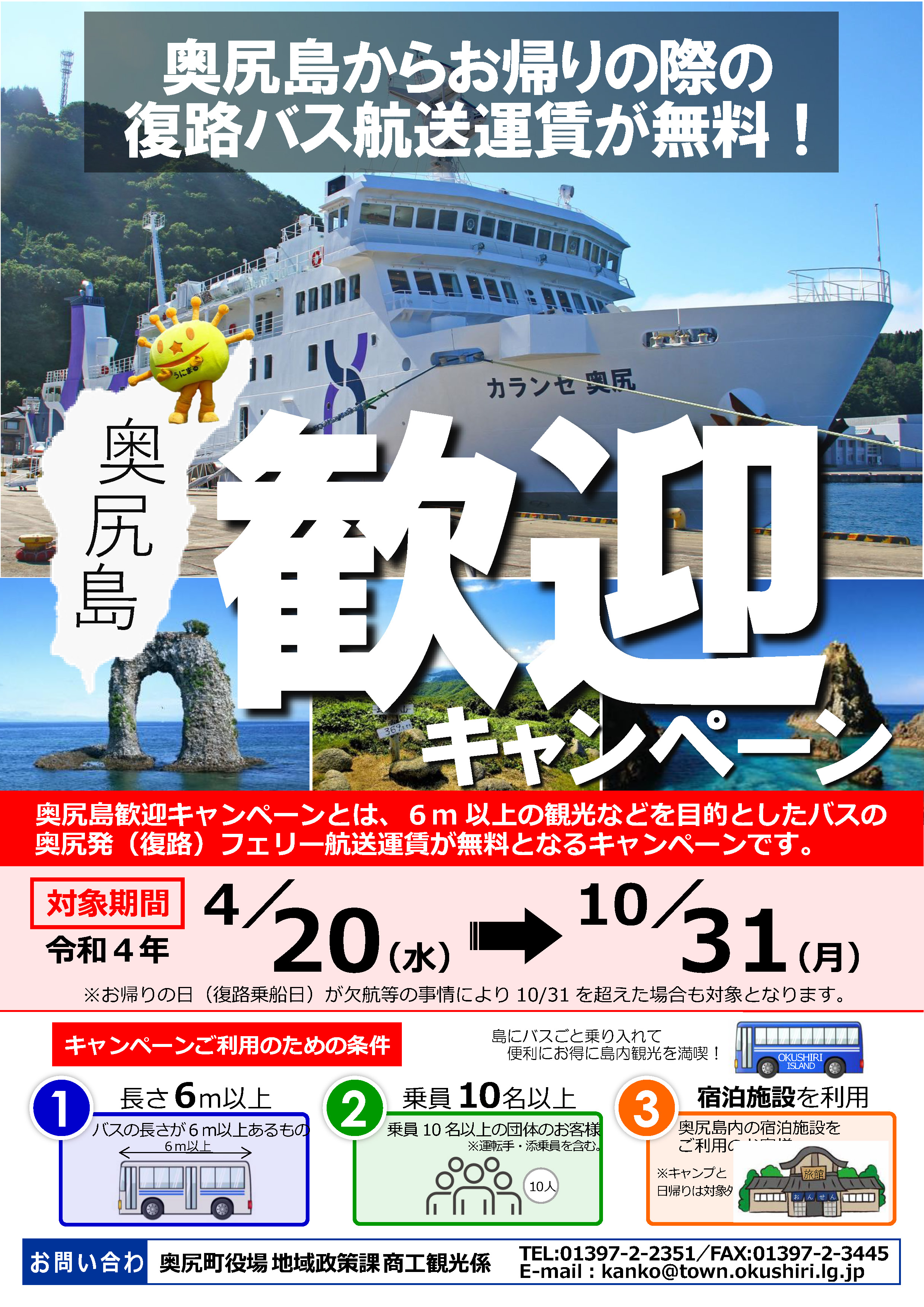 - 奥尻町商工観光係 電話 01397-2-2351